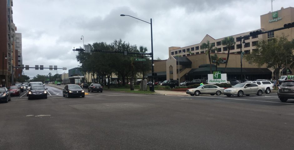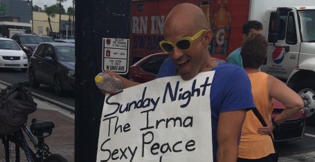 He’s promoting it on the corner of University Avenue, across the street from UF.