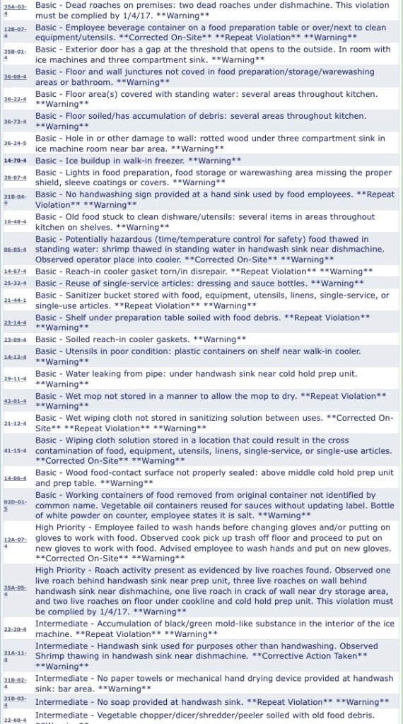 Though the restaurant has reopened, after reading the list of health code violations, we can imagine a few of it’s customers won’t be eating there ever again.