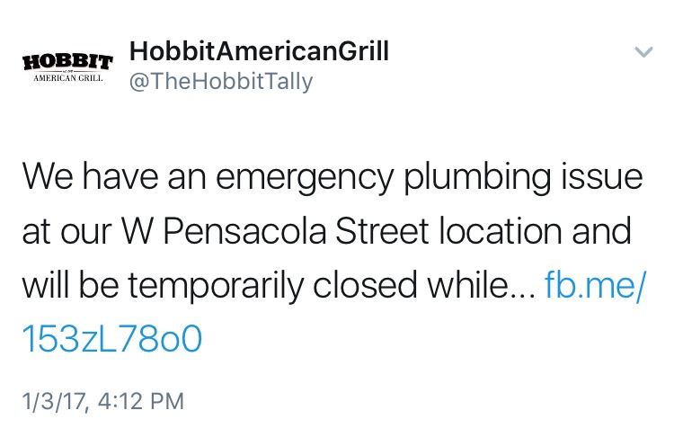 As a beloved late night Florida State spot, FSU students are beyond mortified by all of the health code violations. According to the restaurant’s twitter account. “@TheHobbitTally”, the restaurant is only temporarily shut down due to, “an emergency plumbing issue”.