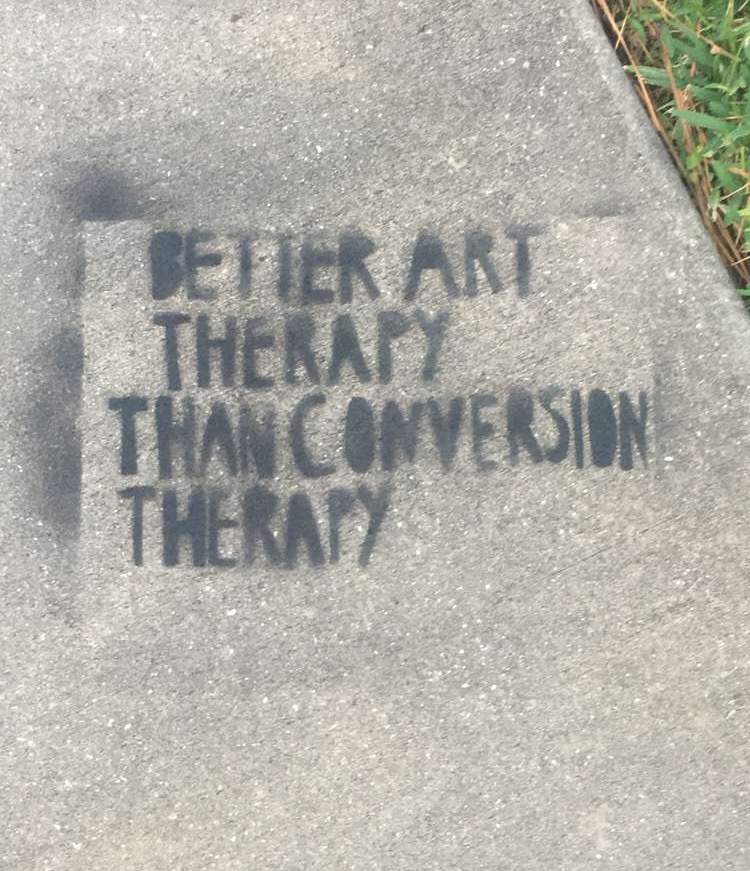 Phrases such as "Better art therapy than conversion therapy" were painted on the sidewalks prior to her attendance, and protest initiatives could be found on most class pages on Facebook.