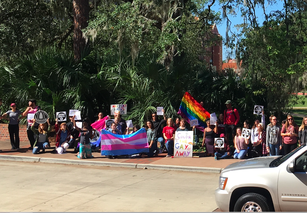 I think it's no coincidence Karen Pence is speaking at FSU the day before Richard Spencer is set to speak at UF. We are not supportive of UF reversing its decision about Spencer, and we are greatly upset that President Fuchs is not respecting the wishes of his students. We don't believe that Karen Pence has any right to speak on therapy initiatives at our university when her and her husband have publicly supported conversion therapy, and she does not represent therapy that is accepting of all students, or LGBT people.