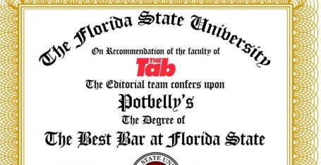 It’s official: Potbelly’s has been voted Florida State’s Best Bar