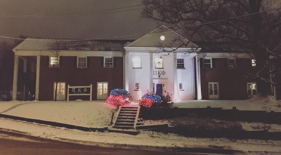 The Pi Kapp house decorated for Christmas