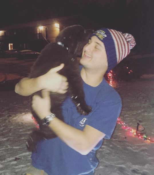 Pi Kapp Tyler Rowe with Ozzie, the fraternity’s new house dog