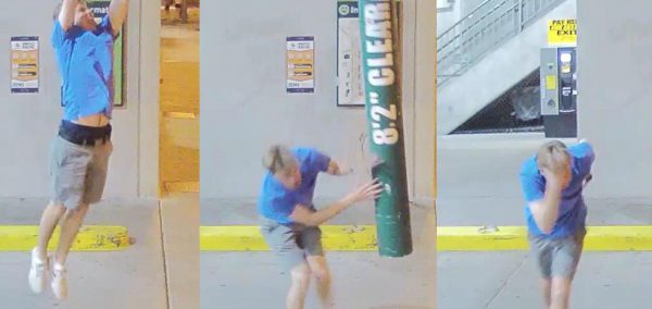 A man was caught on camera at the CVS on M.A.C Ave May 17th, seeming to be testing his strength with pull ups on a clearance sign in the parking garage. To bad for him, however, when the sign gave way and ended up hitting him in the head.