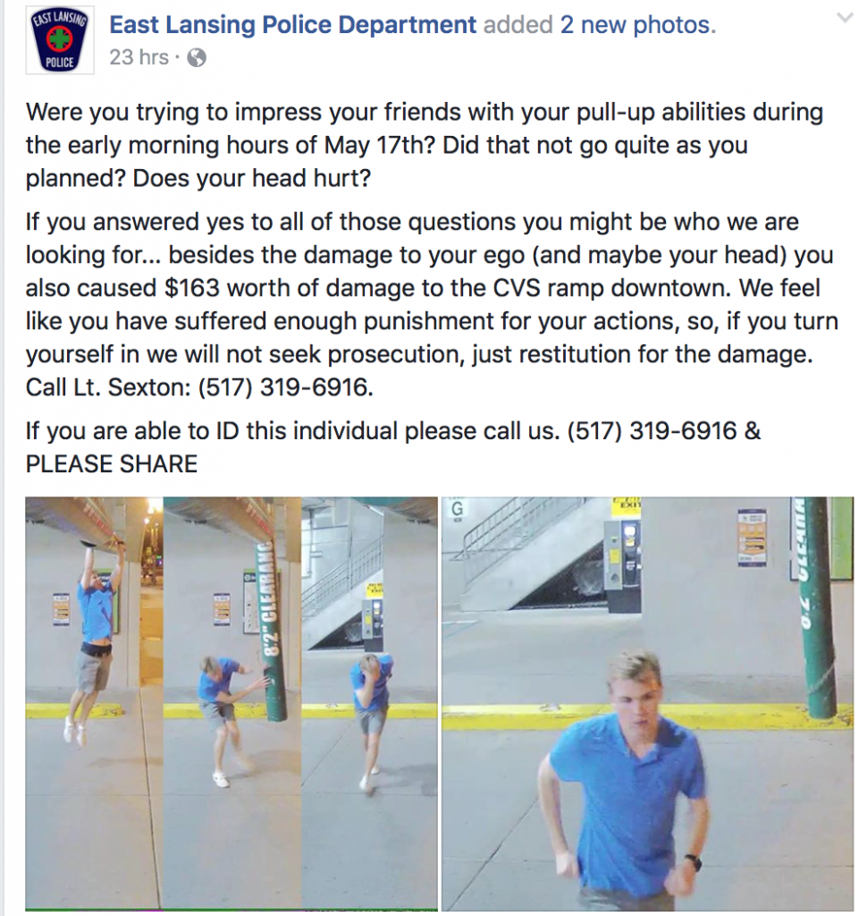 East Lansing PD hilariously calls out prankster on their Facebook page