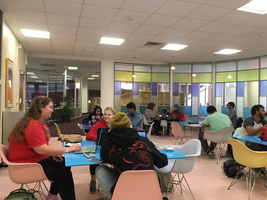 We all know that hopeful feeling when we finally make it to the top of the steps and see the doorway with LEARNING COMMONS written in big block letters above it. You mosey on over and start your search. You don’t even bother looking for a seat in front of a computer and you barely even blink an eye when you see hoards of people around the back tables, but when you pass the comfy seats and find them all full you begin to panic. So, you gather up your courage, take a deep breath and march on.