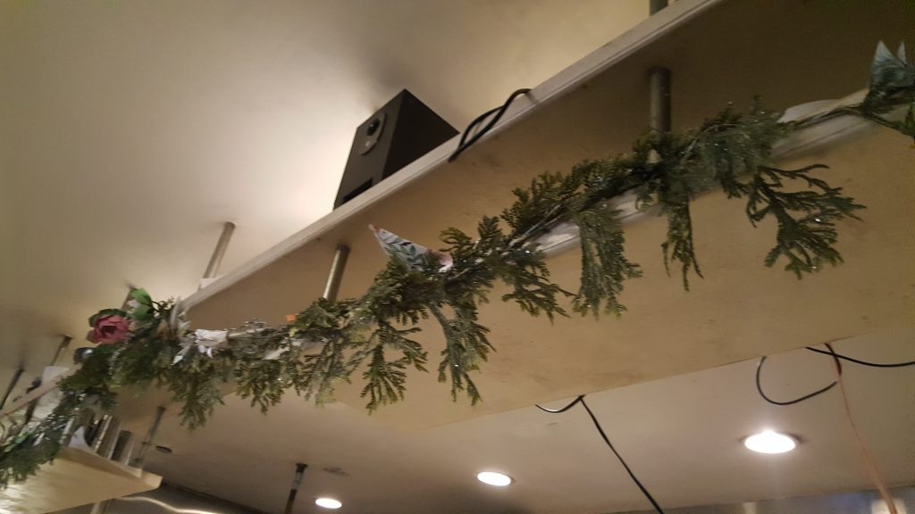 At Bassanova, these are replaced with modern acrylic portraits that hang on one side of the beige space, out-of-season plastic holly and Christmas lights that dangle from high shelves near the kitchen and down from the ceiling, and chill hip-hop music that mixes with the hum of customers chatting over their steaming bowls of noodles. The light-beige tables are set with a metal chair, a single white napkin and larger-than-usual wooden chopsticks with a matching spoon. A little candle with blue Japanese characters lights this fusion-flavored, unique ramen experience.