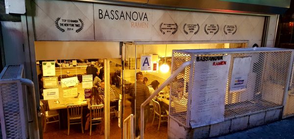 In the heart of Chinatown, at the bottom of a small flight of stairs under a white minimalist sign, sits Bassanova Ramen. About a 6-minute walk from NYU’s Lafayette Hall, this cozy and chic space might look like an underground museum exhibit, not a ramen shop. It lacks the typical earthy tones of the kitchen-side bar and the mimicked, Americanized-Japanese aesthetic; there is no Japanese pop playing, no iconic Great Wave off Kanagawa paintings on the walls, no traditional fabric dividers that hang off the door to the entrance.