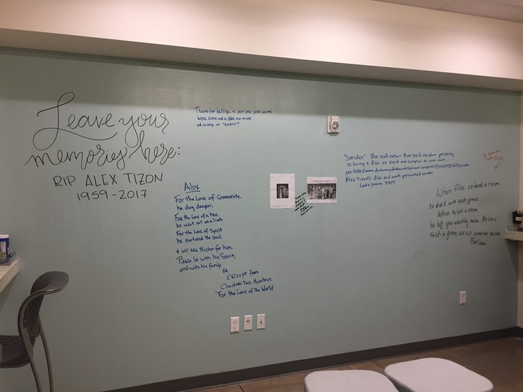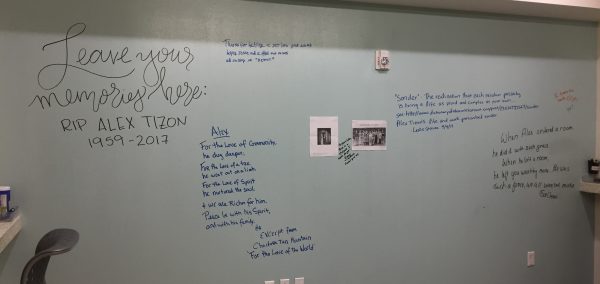 Students and faculty wrote memories of Alex on the whiteboards in Allen Hall