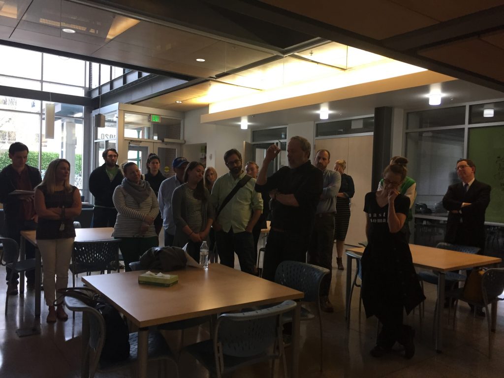 Students and faculty gathered in the Allen Hall atrium to share their memories as well as pay their respects to the Pulitzer Prize winning journalist.