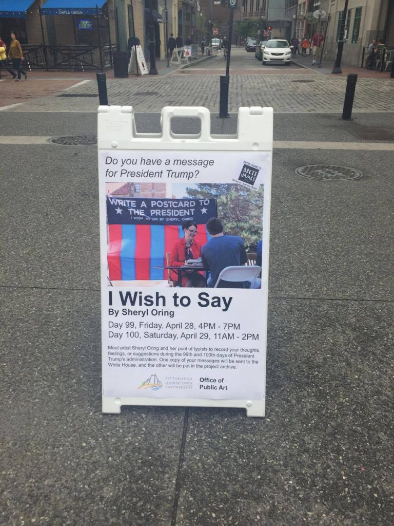 Until 2pm today you can write a letter to President Trump as part of the “I Wish To Say” project which is currently set up at Market Square.