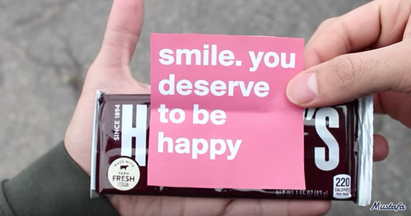 If you’ve been spending your days on Facebook or Reddit instead of studying, you may have come across a video called “Making Strangers Smile (Guaranteed to Make You Smile),” where two guys hand out Hershey bars with encouraging notes taped onto them to random people around the College Avenue Student Center.