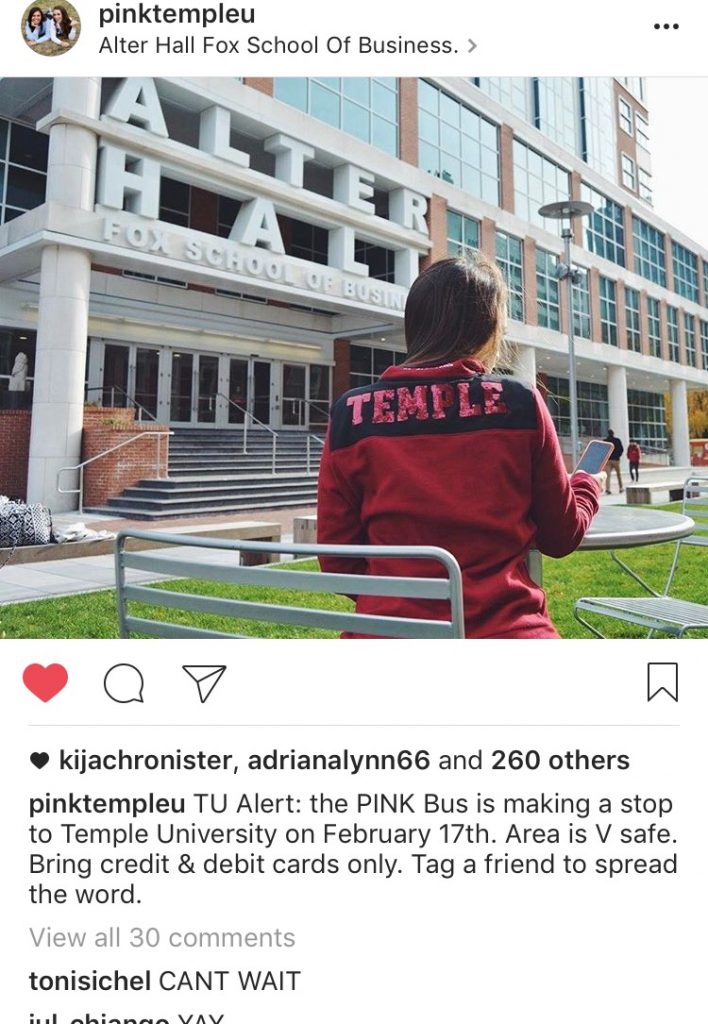 Last night Victoria Secret PINK at Temple University posted on their social media that the PINK bus will be making an appearance at Temple for their Spring Campus Tour.