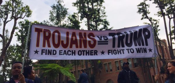 In light of the election, many people have become so anti-Trump that many people feel excluded from participating in events such as this rally. At one point he pointed to the Trojans vs. Trump sign as an example of the division in our community, followed by expressing the need for a unified community, because “community is the best medicine.”