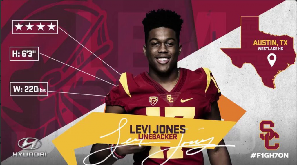 Levi Jones, the No. 11 ranked outside linebacker committed to USC this morning, but not without trolling both the University of Florida and Florida State University.