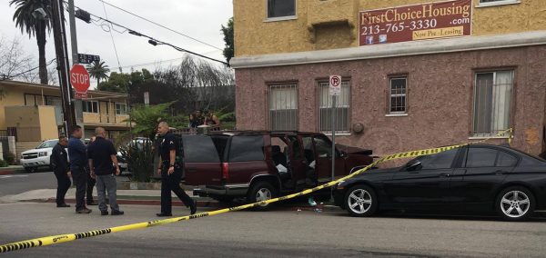 At noon, a stolen red GMC crashed into a First Choice Housing apartment building on the southeast corner of Orchard Avenue and 29th Street after a police chase. According to LAPD, three non-USC suspects have been taken into custody, and one person has been injured.