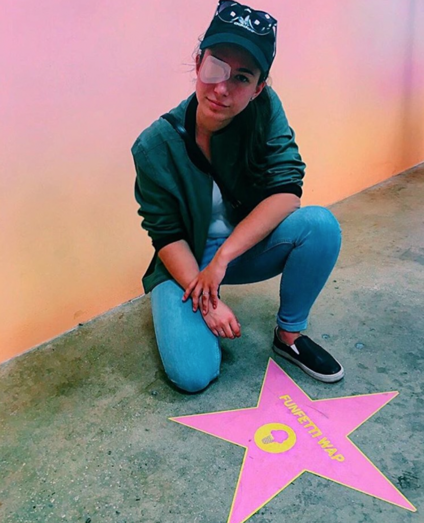 We took this as an opportunity to make fun of our friend who just got eye surgery and made her pose with the “Funfetti Wap” star. #1738